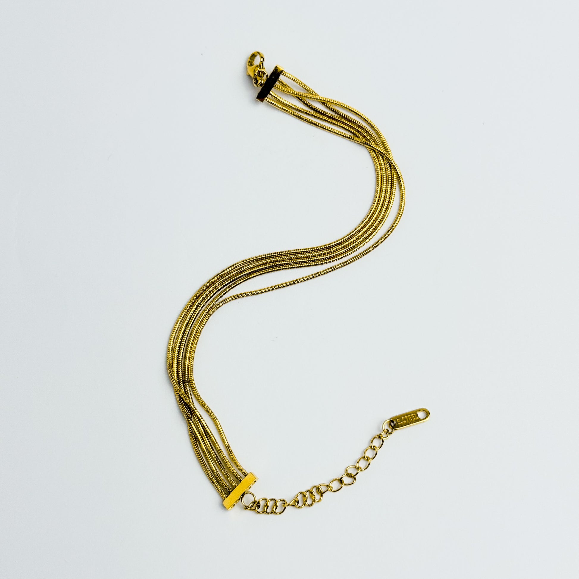 The Golden Flow bracelet is an ode to effortless elegance. Crafted from polished stainless steel, this piece features multiple fine snake chains that drape around your wrist like golden rivers. Its fluid silhouette, adjustable clasp, and tarnish-free finish make it perfect for stacking or wearing solo for a minimalist statement. Designed for those who love their jewelry to move with them — bold yet versatile, just like you.