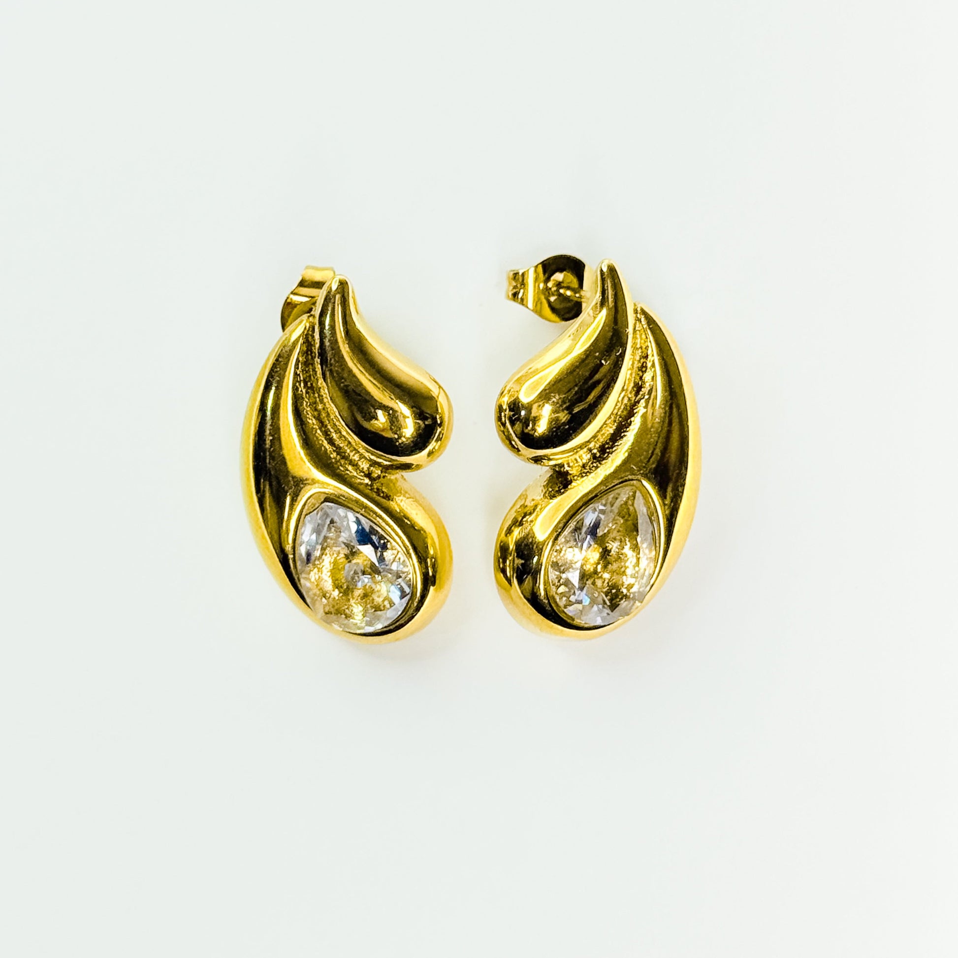 Bold teardrop studs with a single crystal accent — vintage charm meets modern shine.